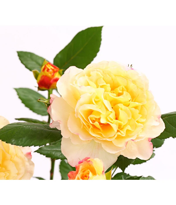 Diese weltweit beliebte Schnitt- und Gartenrose bezaubert mit ballförmigen Blüten in der eleganten Farbkombination Cremeweiß mit Kirschrot und einem lieblichen Duft. Das Laub ist lederartig und stark glänzend, der Austrieb rötlich.