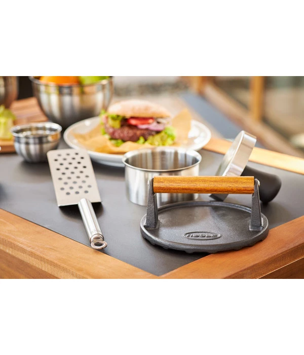 Sie lieben es nach Ihrem Feierabend auf Ihrer Terrasse gemütlich ein paar Steaks oder Gemüse zu grillen? Dann brauchen Sie dringend dieses nützliche Zubehör. Das BBQ Gewicht von Rösle besteht aus emailliertem Gusseisen und besitzt einen dunklen Holzgriff. Durch das Gewicht erhält Ihr Grillgut Hitze von beiden Seiten und wird dadurch besonders schnell und schonend gegart. Dieses nützliche Zubehör ist daher ideal geeignet zum Grillen von Burger, Steaks und Kurzgebratenem.