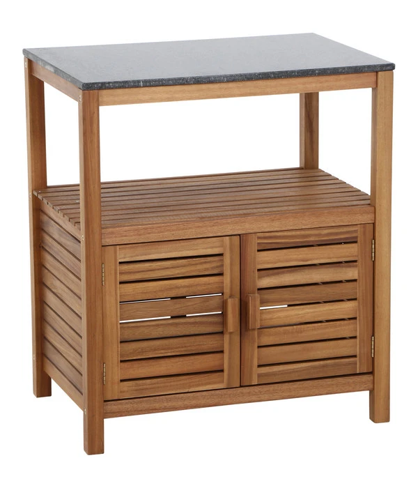 Bei einem Küchenmöbel steht die Funktion im Vordergrund. Das Siena Garden Outdoorküche Mittelteil Riva ist jedoch auch optisch ein Genuss. Aus massivem Akazienholz in attraktiver Lattenoptik gefertigt wird es zum dekorativen Einrichtungselement Ihrer Outdoor-Wohnung. Dank der geölten Oberfläche kann das äußerst harte und witterungsbeständige Akazienholz seine ausdrucksstarke Maserung optimal zeigen und verleiht dem Möbelstück seine lebendige Optik und warme Ausstrahlung. Gekrönt wird Ihr Terrassenmöbel von einer edlen Granitarbeitsplatte. Zwei hochwertige Naturmaterialien also, die für eine individuelle Optik sorgen.